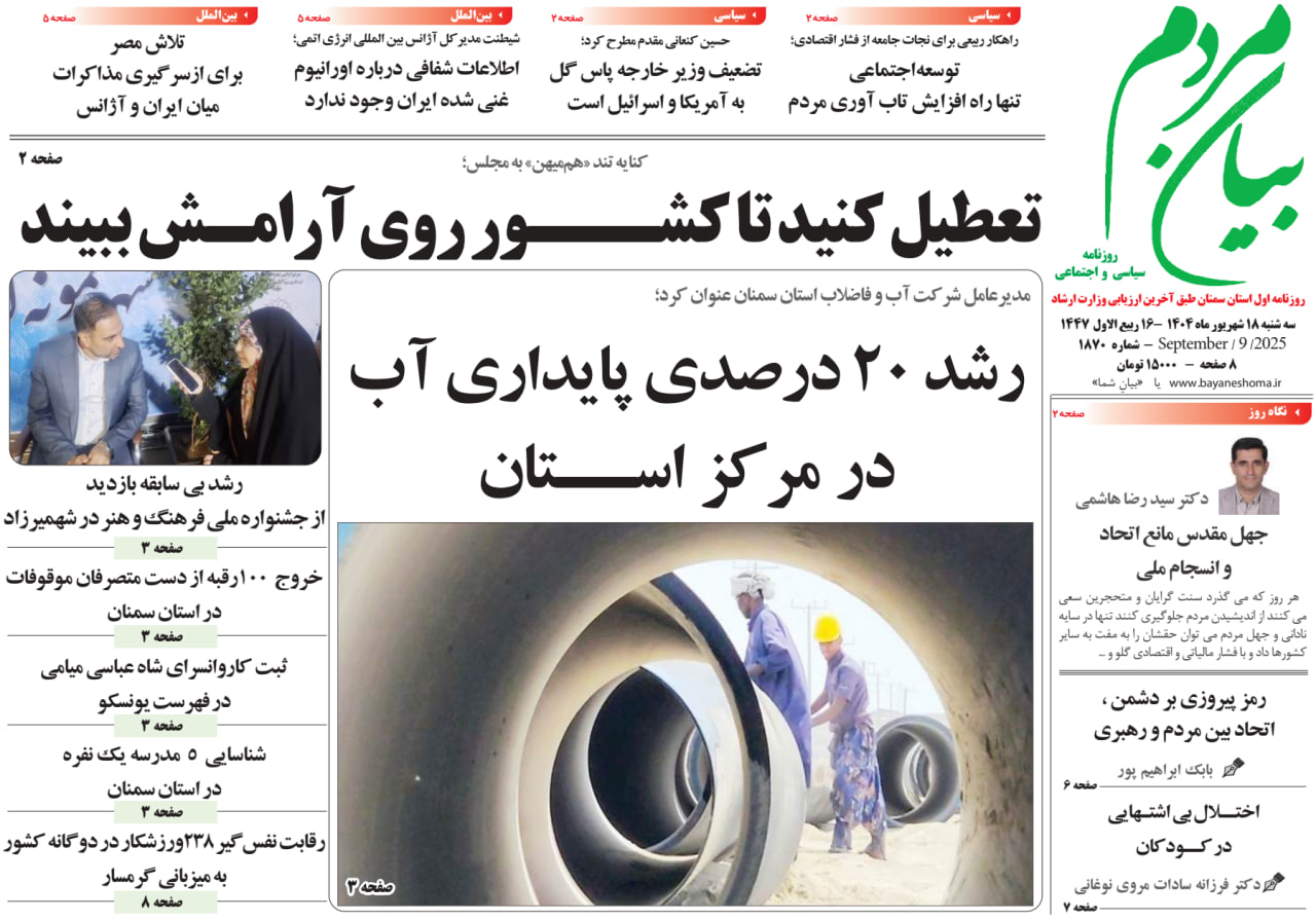 روزنامه بیان مردم1404/08/5