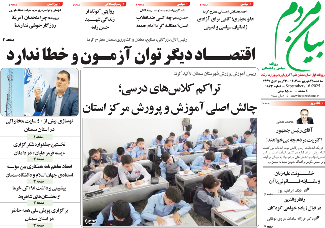 روزنامه بیان مردم |1404/06/25