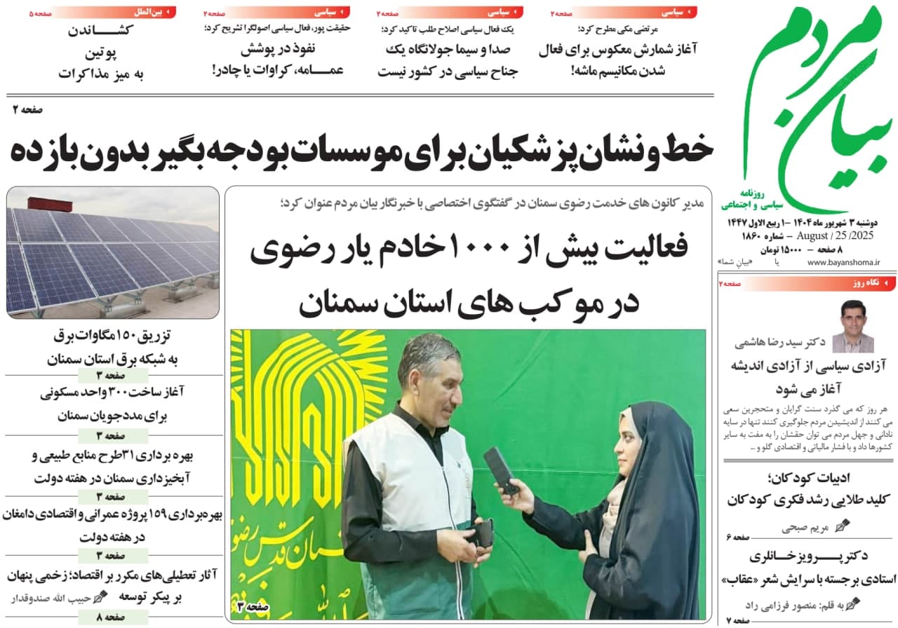 روزنامه بیان مردم |1404/06/3