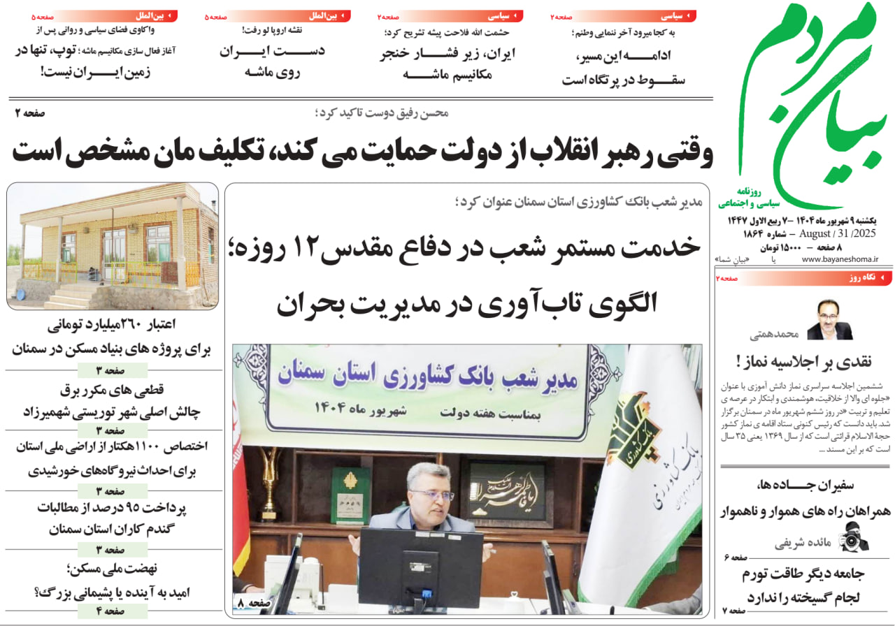 روزنامه بیان مردم |1404/06/9