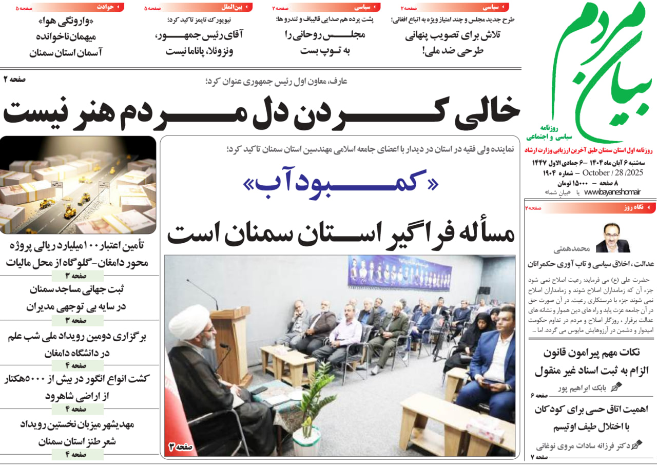 روزنامه بیان مردم1404/08/6