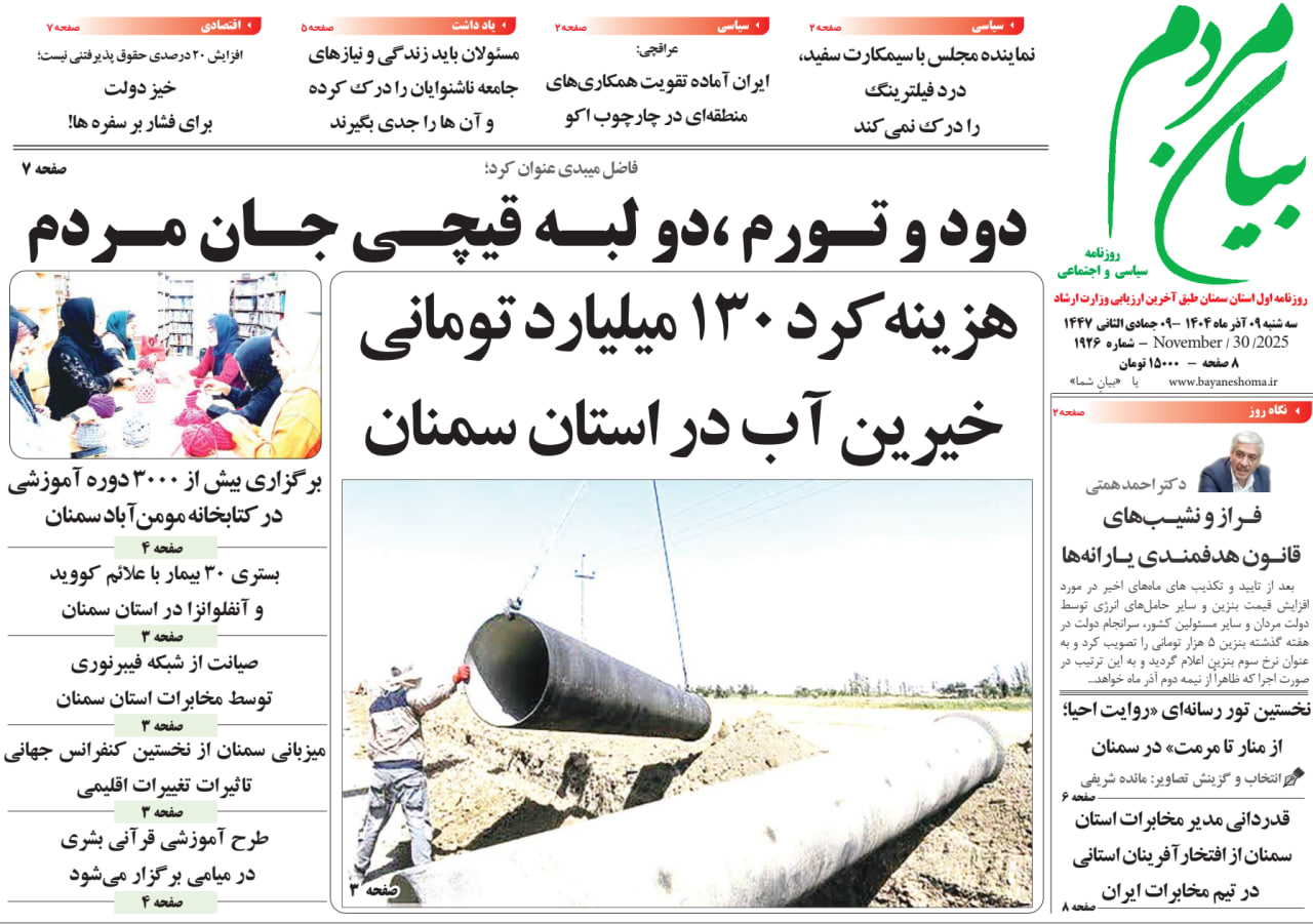روزنامه بیان مردم1404/09/09 شناسه خبر: 17735 تاریخ و زمان ارسال: 9 آذر 1404 ساعت 10:19 روزنامه بیان مردم1404/09/09