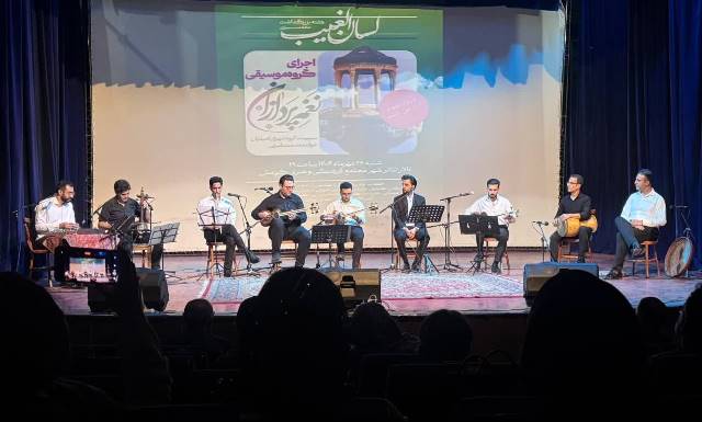 به گزارش سیدرضا عظیمی خبرنگار بیان شما، در این برنامه قطعاتی از آواز بیات ترک با تصامینی از اشعار حافظ و با نوازندگی سنتور توسط کیارش عزیزالدین، تار مهران امیدیان و پدرام اشهد، کمانچه امید امیدیان، نی کیارش بکتاشیان، بم تار کیارش زنگیان، تنبک آرش فلاح و دف مهدی ایزدی اجرا شد.